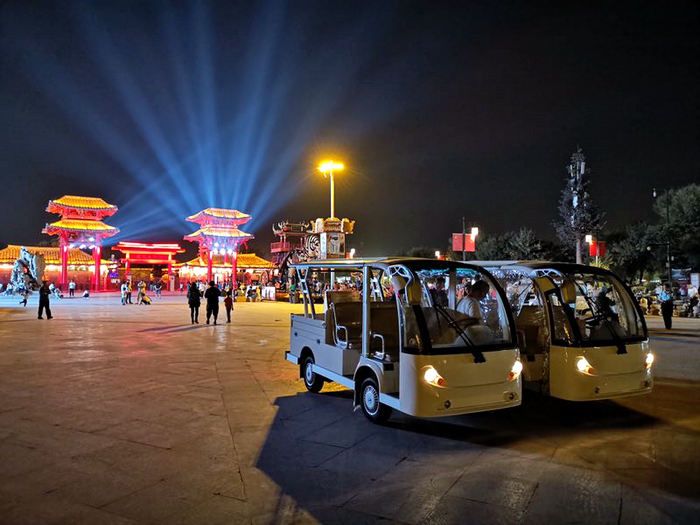 十一國慶節(jié)期間,由開封市采購的20余臺高配鋰電池益高電動(dòng)觀光車正式投入宋都皇城開封府、清明上河園、龍庭、天波楊府及鐵塔公園等著名景區(qū)紅火運(yùn)營。